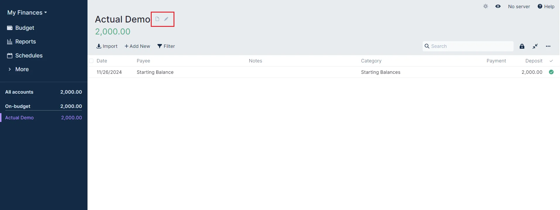 Actual makes a distinction between accounts being on budget or off budget.